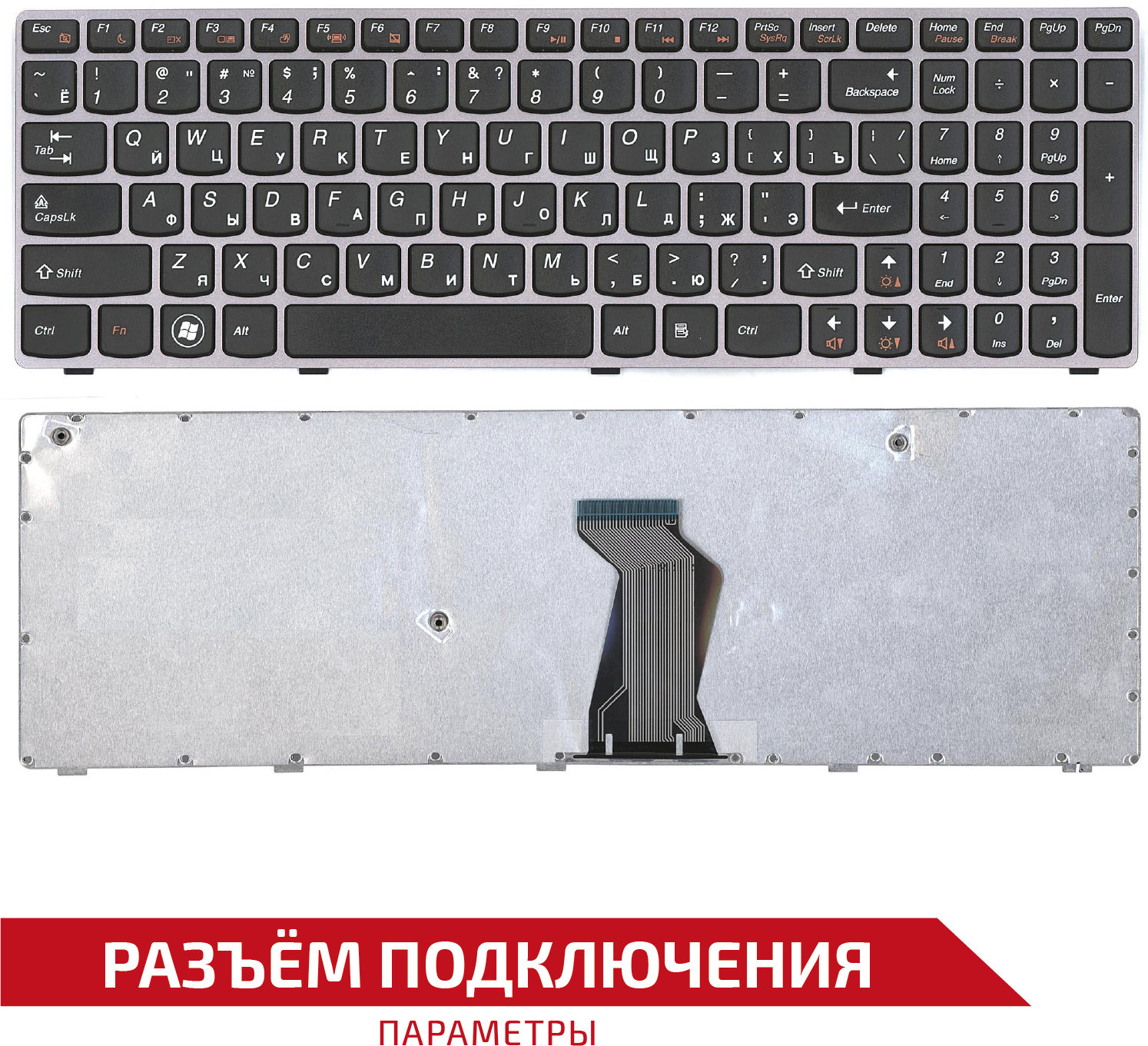 Клавиатура для ноутбука Lenovo IdeaPad B570 B580 V570 Z570 Z575 черная с серой рамкой