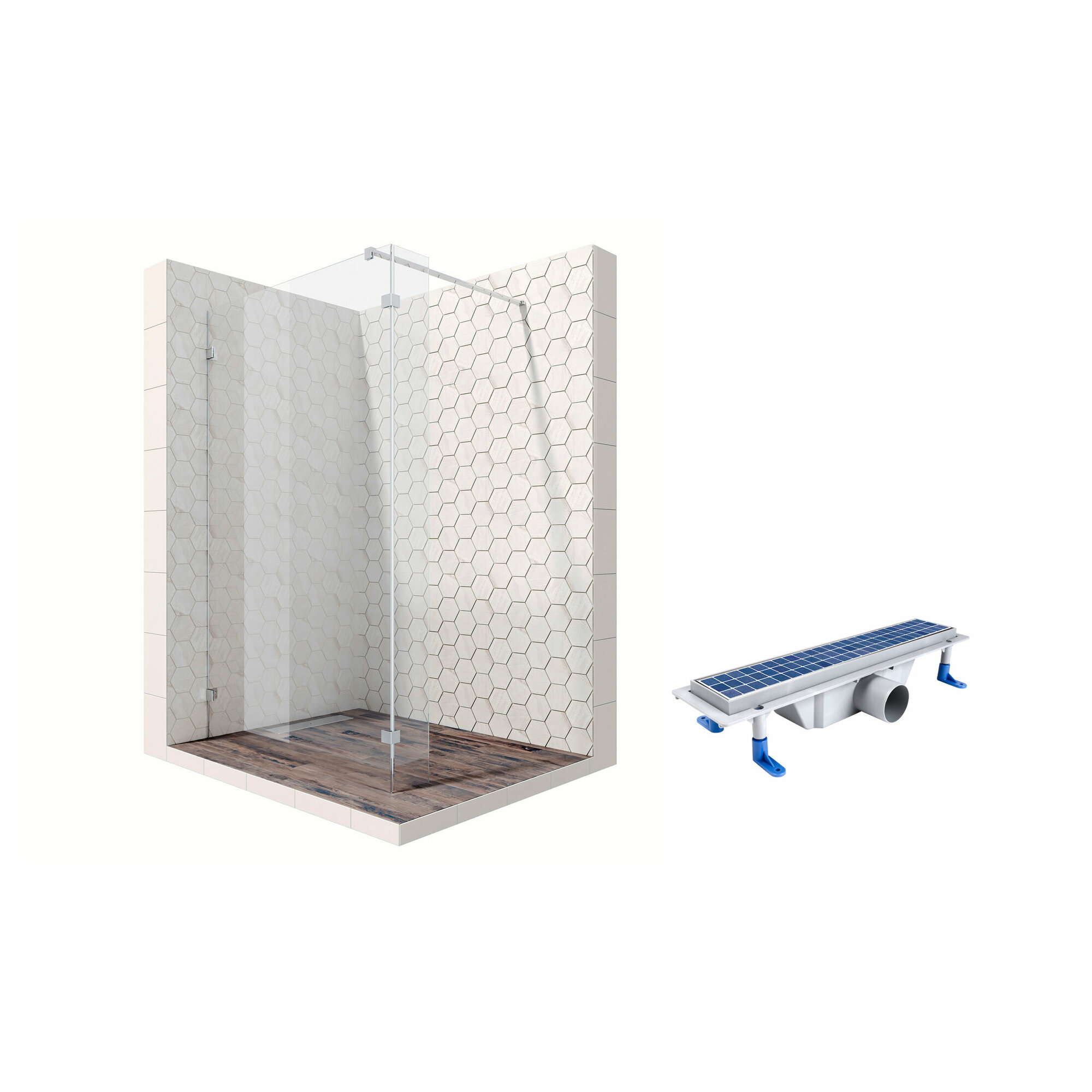 Комплект душевого ограждения (перегородка) со свободным входом с линейным трапом Ambassador Walk-in 15031107-ST4, с EasyClean, 110 х 25 см