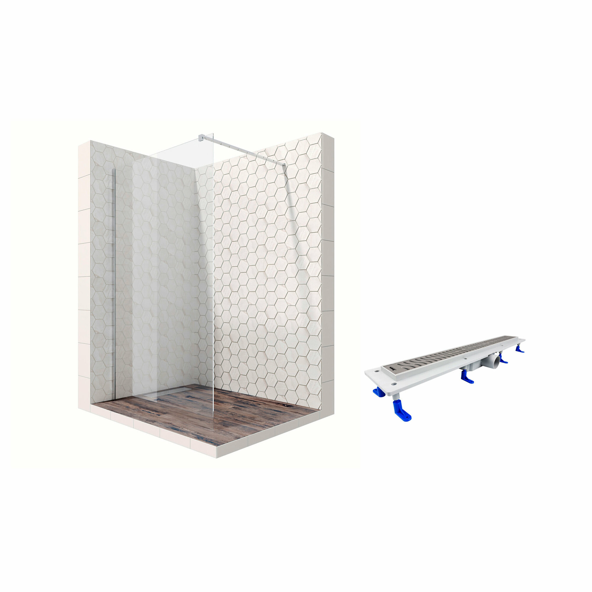 Комплект душевого ограждения (перегородка) со свободным входом с линейным трапом Ambassador Walk-in 15031111-ST14, с EasyClean, 110 см