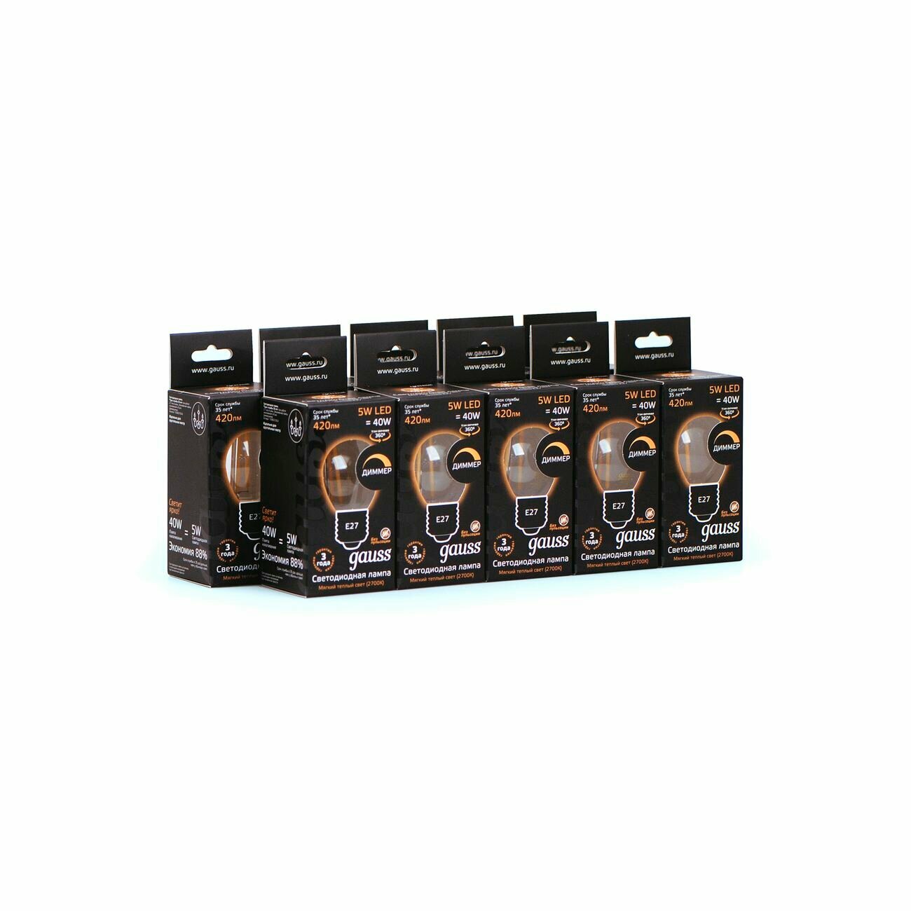 Упаковка ламп 10шт Gauss Filament Шар 5W 420lm 2700К Е27 диммируемая LED 1/10/50