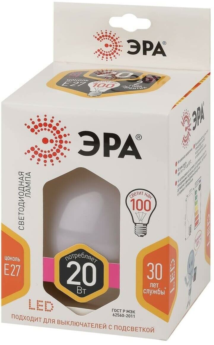 Ниже Вы можете прочитать отзывы на Лампа светодиодная ЭРА E27 20W 2700K матовая LED G120-20W-2700K-E27 Б0049080, ознакомится с подробными характеристиками, посмотреть интересные обзоры и фотографии на Лампа светодиодная ЭРА E27 20W 2700K матовая LED G120-20W-2700K-E27 Б0049080.