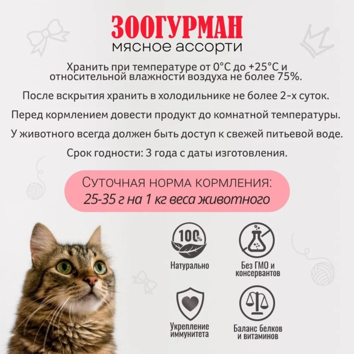 Зоогурман мясное ассорти для взрослых кошек с говядиной отборной банка NEW 100 гр х 6 шт