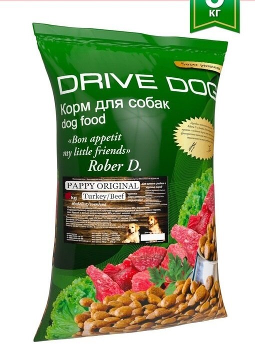 DRIVE DOG PAPPY ORIGINAL корм для щенков средних и крупных пород индейка с говядиной (5 кг)