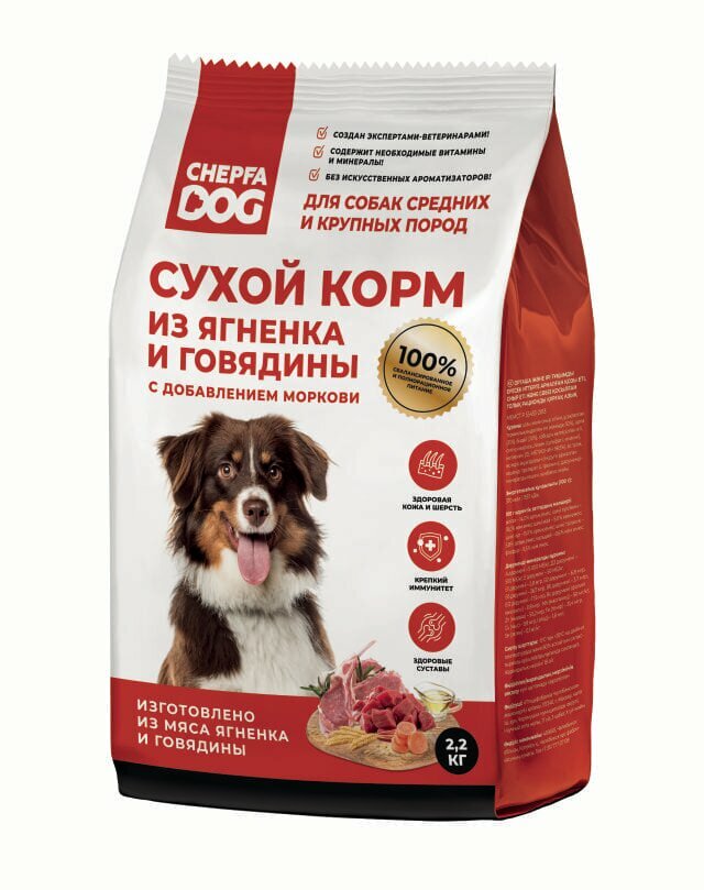 Сухой корм CHEPFADOG для собак средних и крупных пород, ягненок/говядина/морковь, 2,2 кг