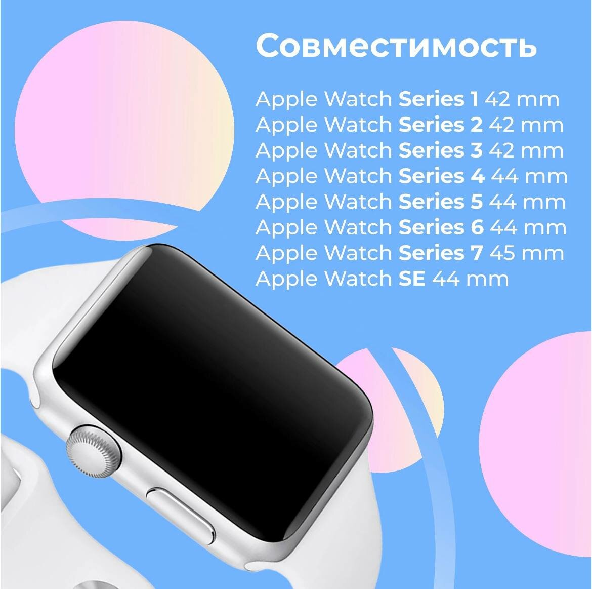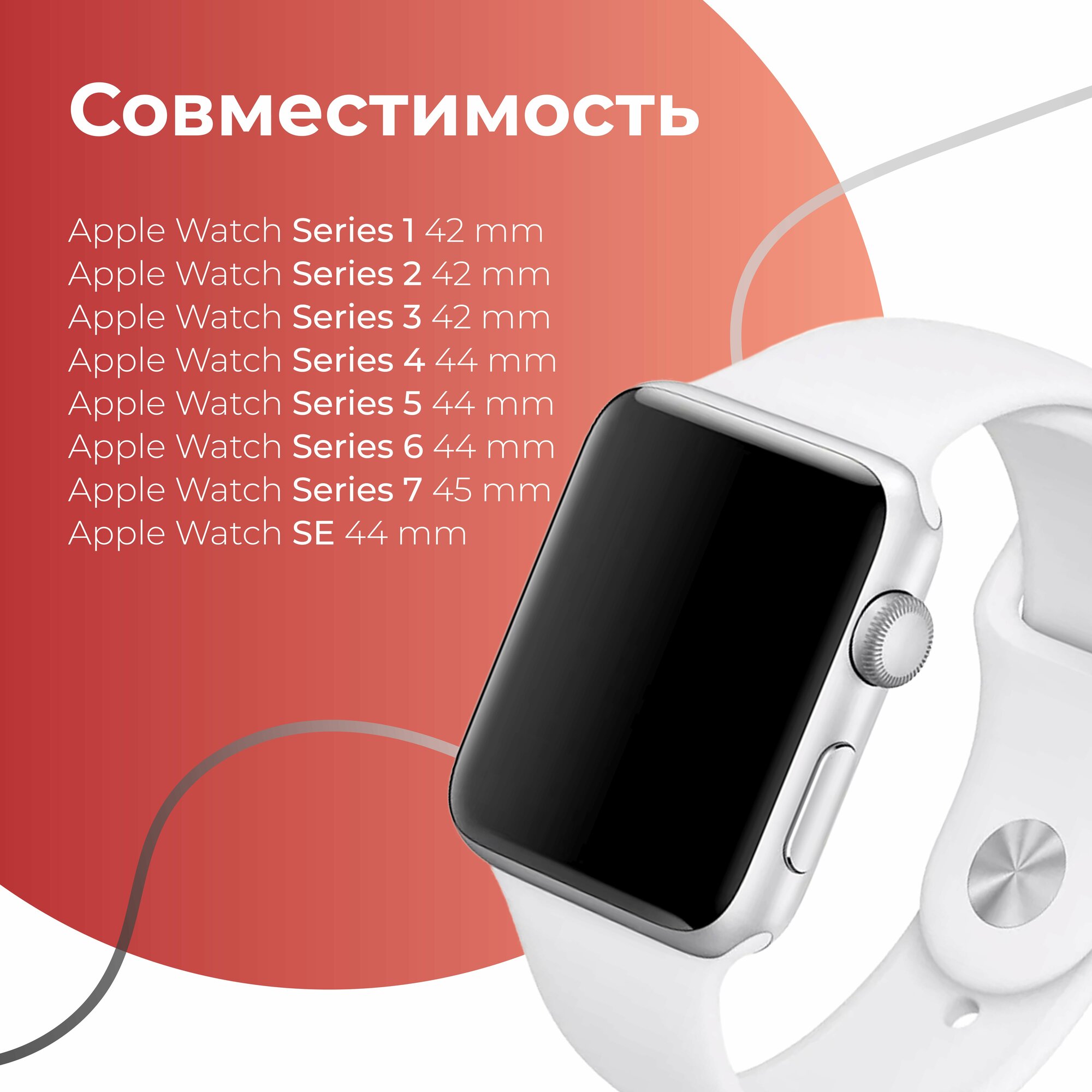 | Совместимость | Apple Watch 42 мм / Apple Watch 44 мм / Apple Watch 45 мм / Apple Watch SE / Apple Watch Series 1 / Apple Watch Series 2 / Apple Watch Series 3 / Apple Watch Series 5 / Apple Watch Series 6 / Apple Watch Series 7 |