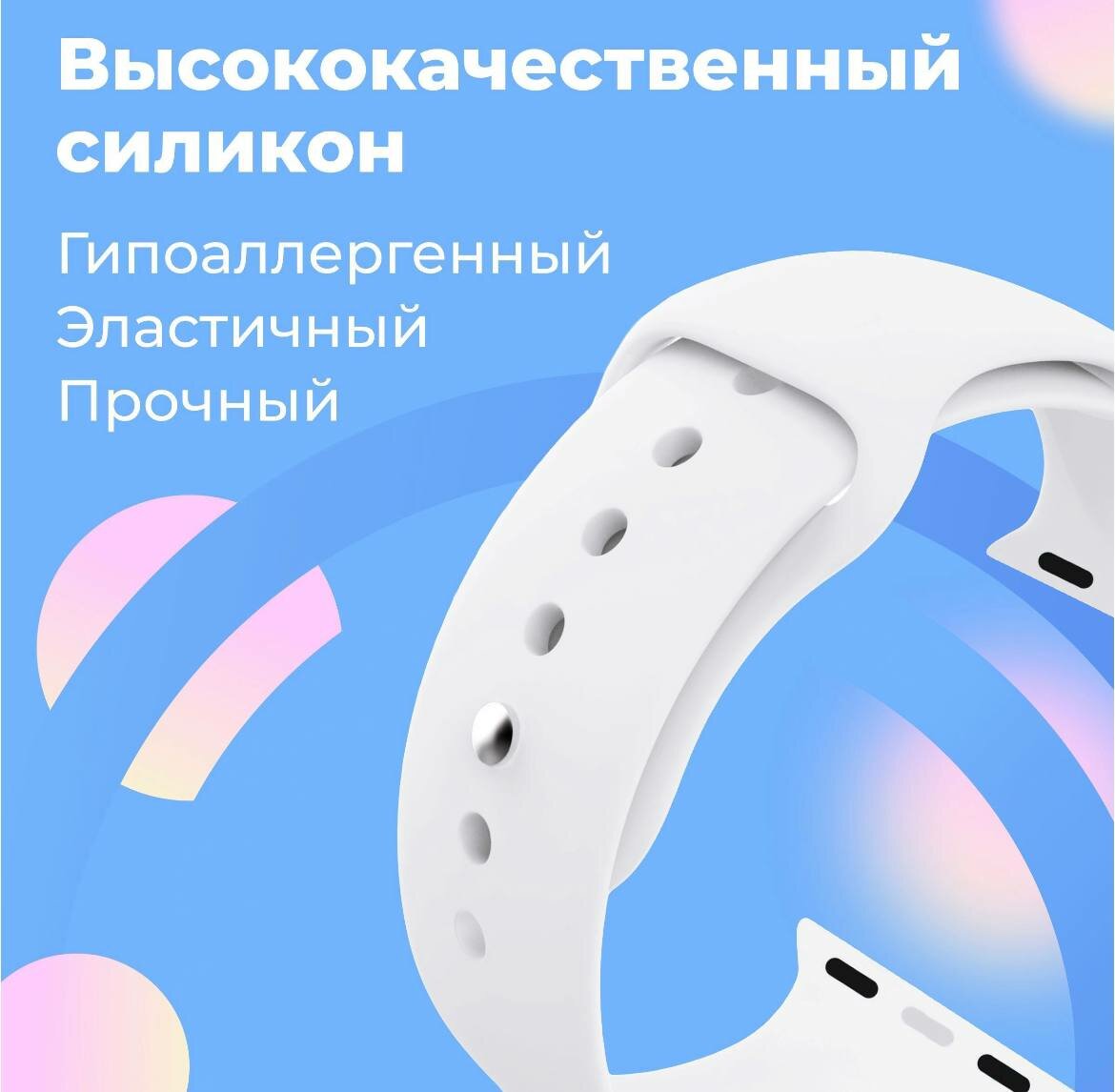 Силиконовый ремешок на Apple Watch 42-44-45-49 мм, Series 1-7, SE / Сменный браслет для смарт часов Эпл Вотч 42, 44, 45 и 49 мм / Белый интересное:
