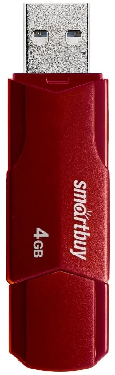 Флешка Smartbuy 4GBCLU-BG, 4 Гб, USB2.0, чт до 25 Мб/с, зап до 15 Мб/с, темно-красная