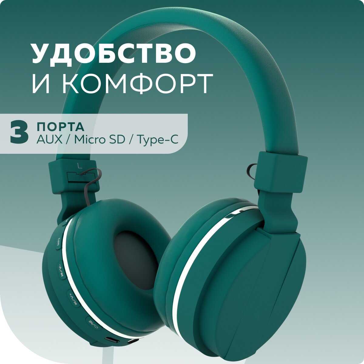 Наушники More Choice HW15 Green беспрводные накладные 5.0 200mAh