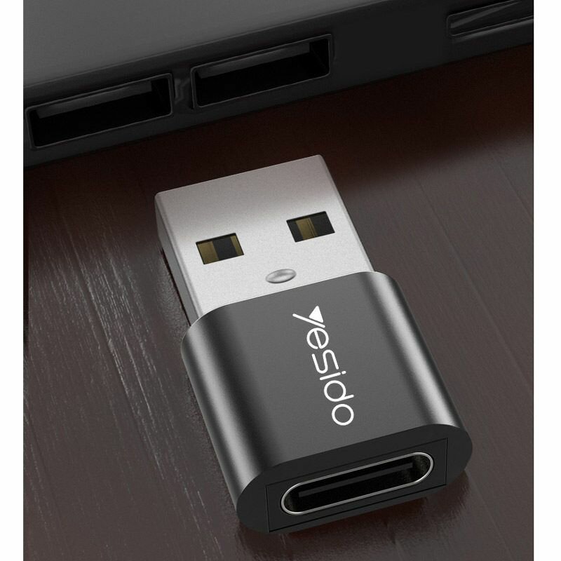 Переходник Yesido GS09 OTG Adapter USB to Type-C, алюминиевый, для быстрой зарядки и передачи данных, черный