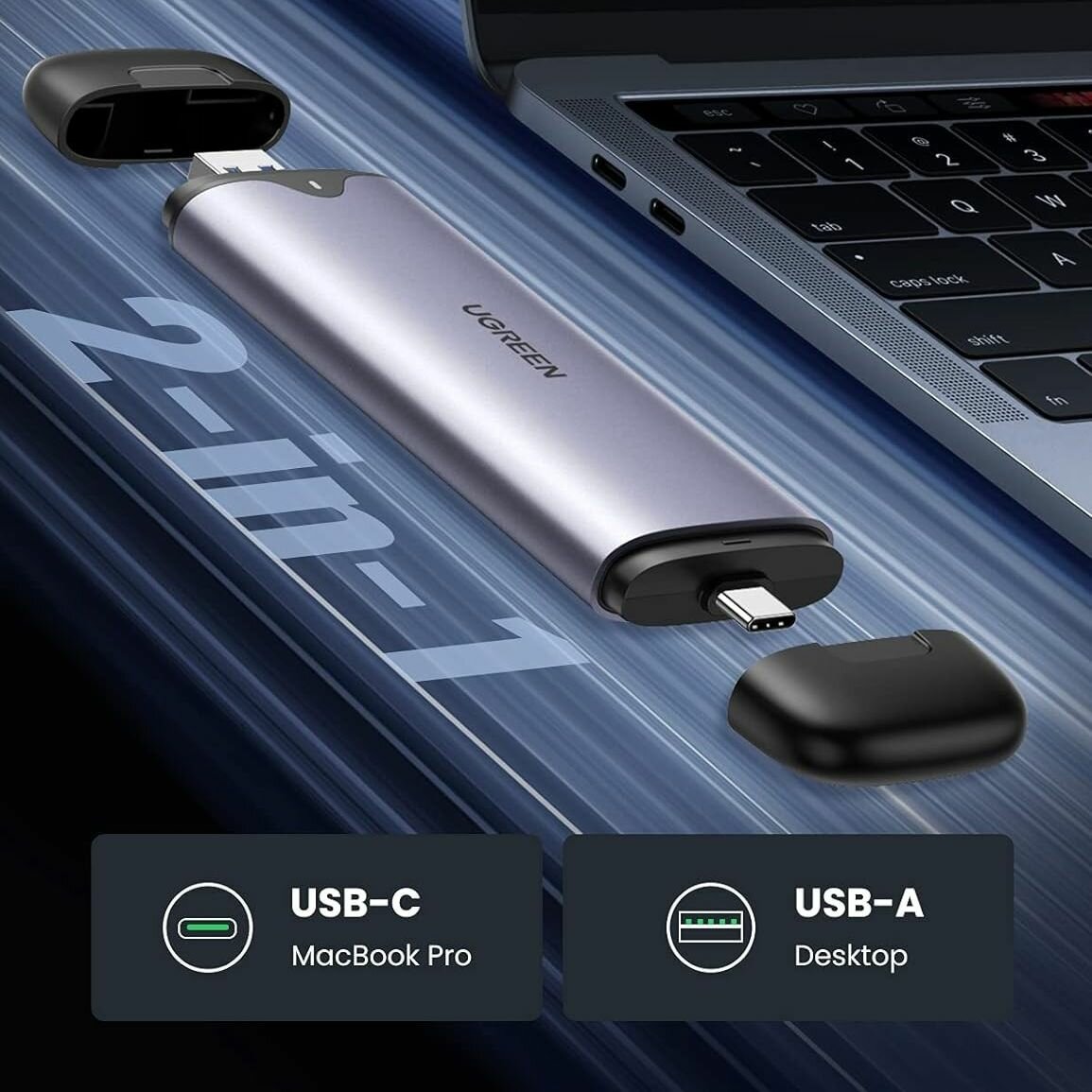 Бокс для накопителей UGREEN CM353 (70532), вход: Type-C 3.1 Gen2 (M)/USB-A (M), выход: M.2 M-Key (NV