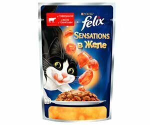 СохранитьВлажный корм для взрослых кошек Felix Sensations, с говядиной, с томатами 75 г (кусочки в желе) интересное: