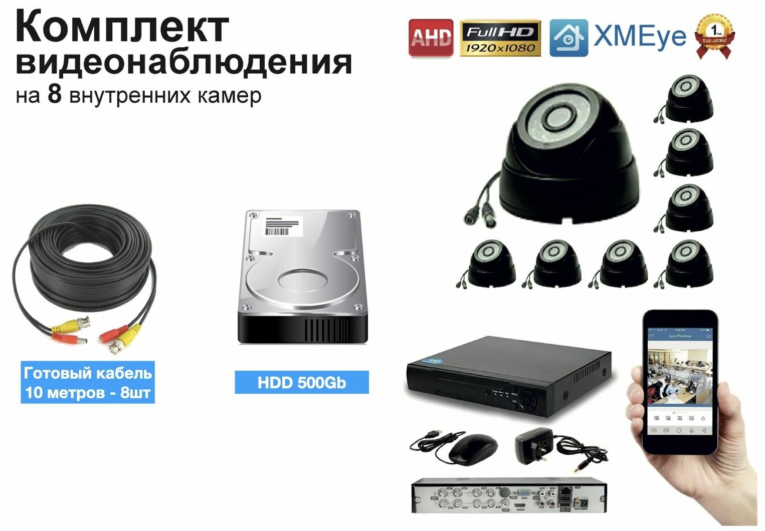 Полный готовый комплект видеонаблюдения на 8 камер Full HD (KIT8AHD300B1080P_HDD4TB) интересное: