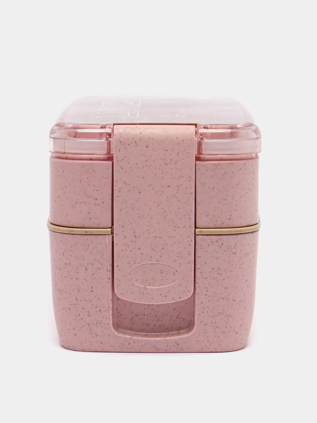 Ланч-бокс со столовыми приборами, контейнер для еды пластиковый двухуровневый, 750 мл, розовый интересное: