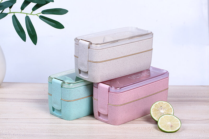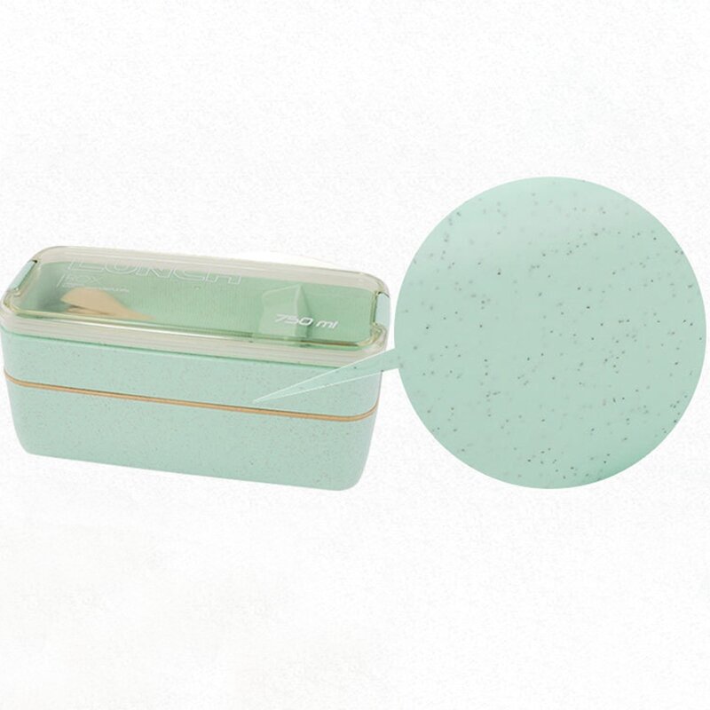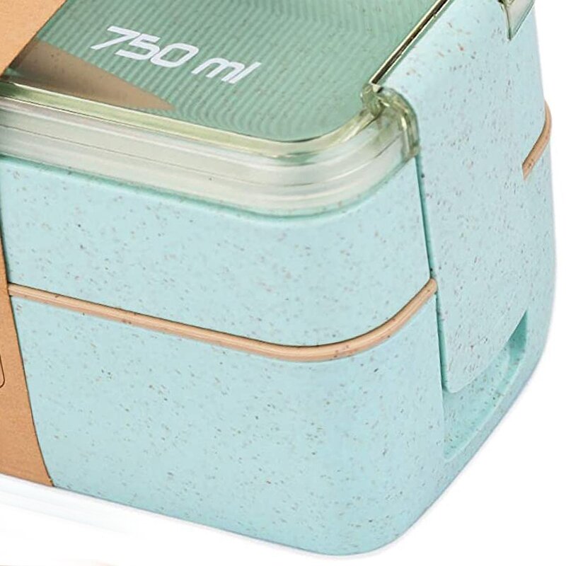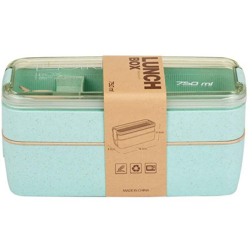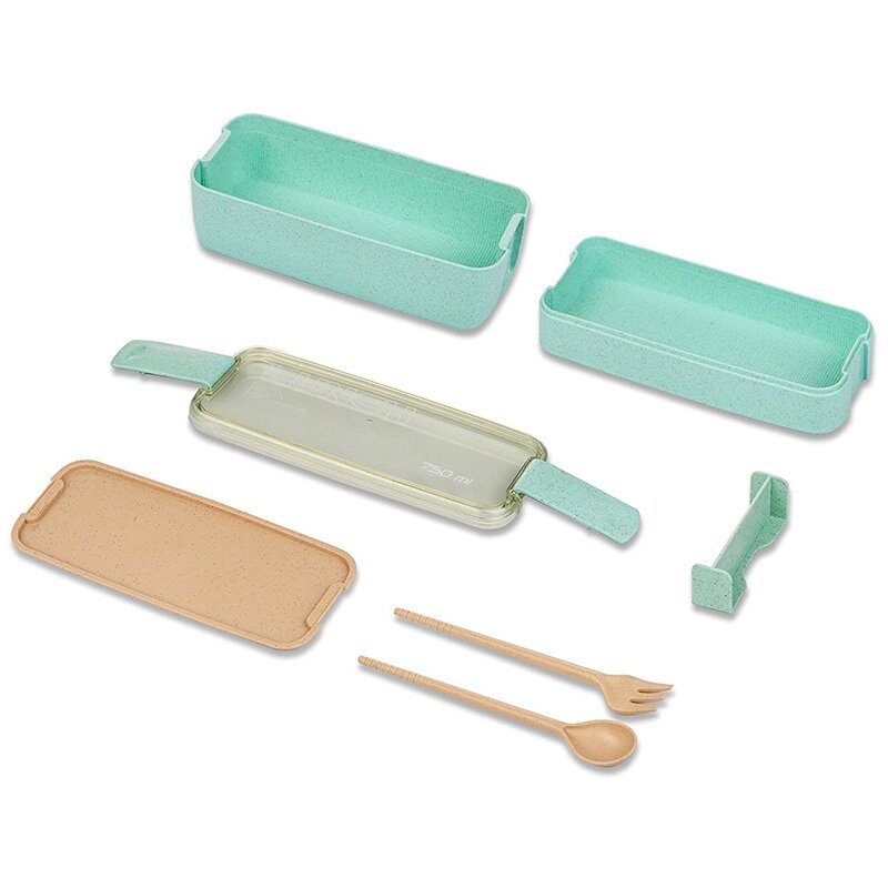 Купить Ланч-бокс со столовыми приборами, контейнер для еды пластиковый двухуровневый, 750 мл, зеленый