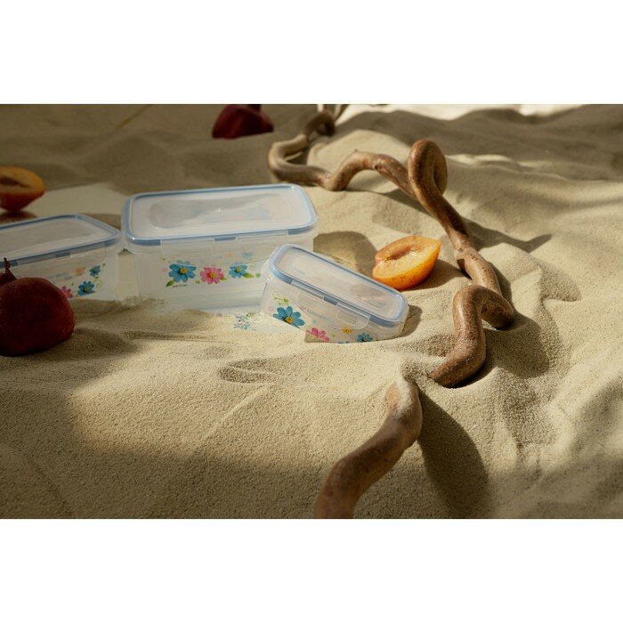--- Набор ланч-боксов прямоугольных "Полянка", 3 шт: 150 мл, 300 мл, 500 мл, цвет микс
