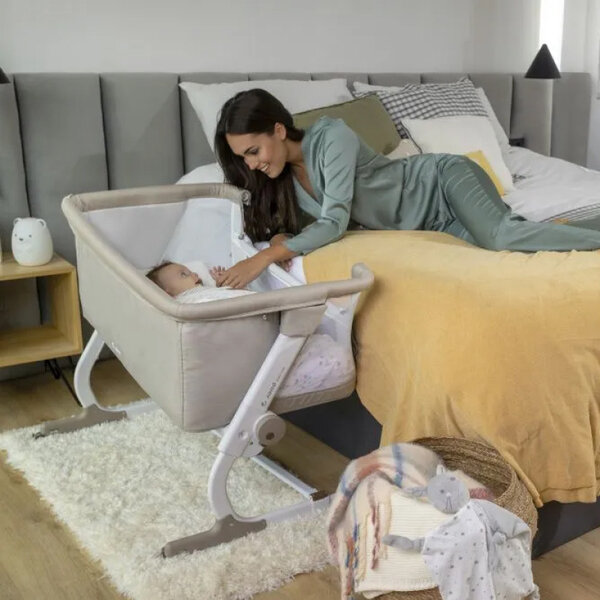 JANE Кроватка приставная 0+ с комплектом постельного белья Baby Side, Pale