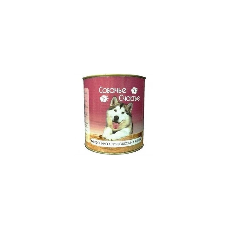 Консервированный корм для собак, Собачье Счастье, баранина с потрошками в желе, 750 г, 1 шт.