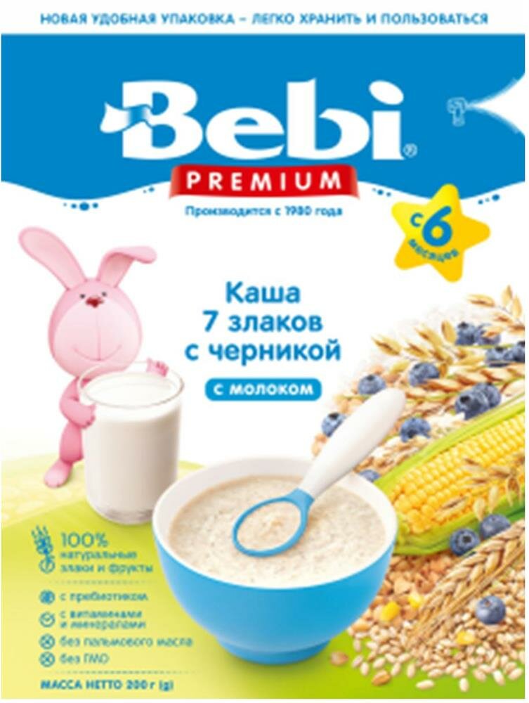 Купить BEBI PREMIUM Каша 7 Злаков с Черникой с Молоком {с 6 мес.} 200г