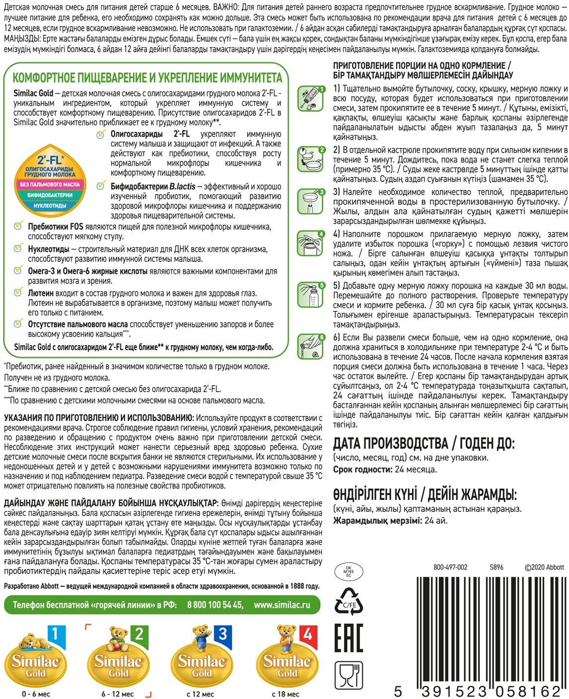 Смесь Similac Gold 2 с 2'-FL для иммунитета и комфортного пищеварения, 6-12 мес, 800 г