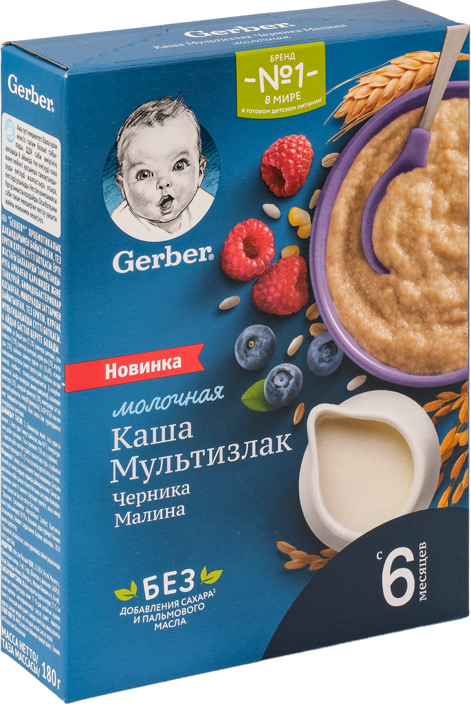 Каша молочная Gerber мультизлаковая с черникой и малиной с 6 месяцев 180 г интересное: