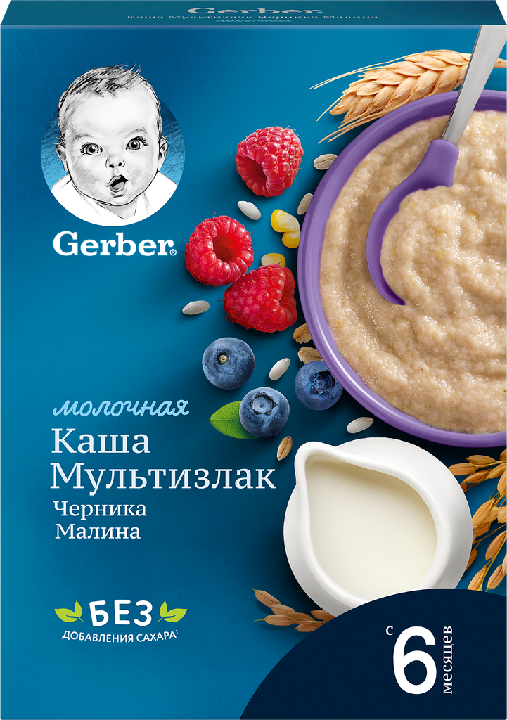 Каша Gerber молочная мультизлаковая с черникой и малиной, с 6 месяцев