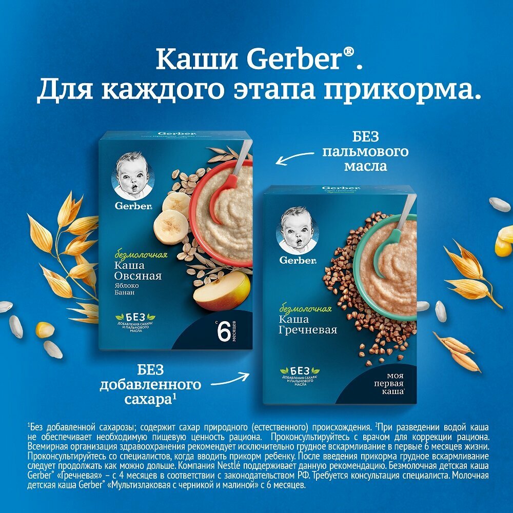 Каша Gerber безмолочная овсяная с яблоком и бананом, с 6 месяцев, 180 г