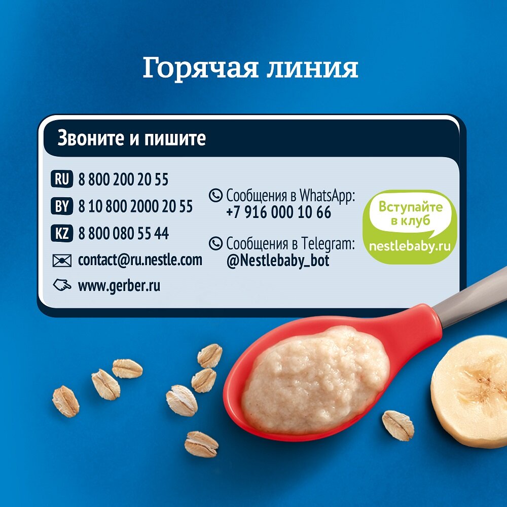 Каша овсяная GERBER безмолочная, с бананом и яблоком, с 6 месяцев, 180г