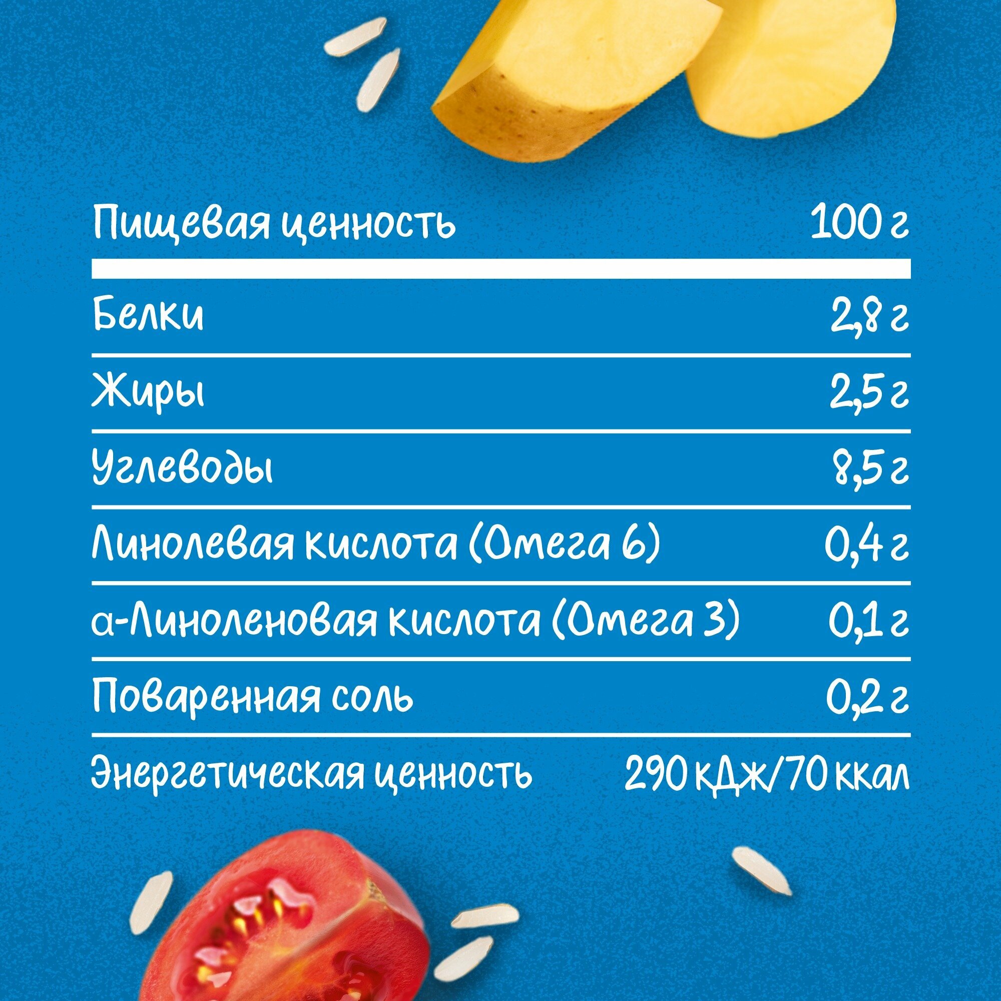 | Не содержит | искусственные ароматизаторы / искусственные красители / консерванты / крахмал / пальмовое масло / сахар / соя / яйца |