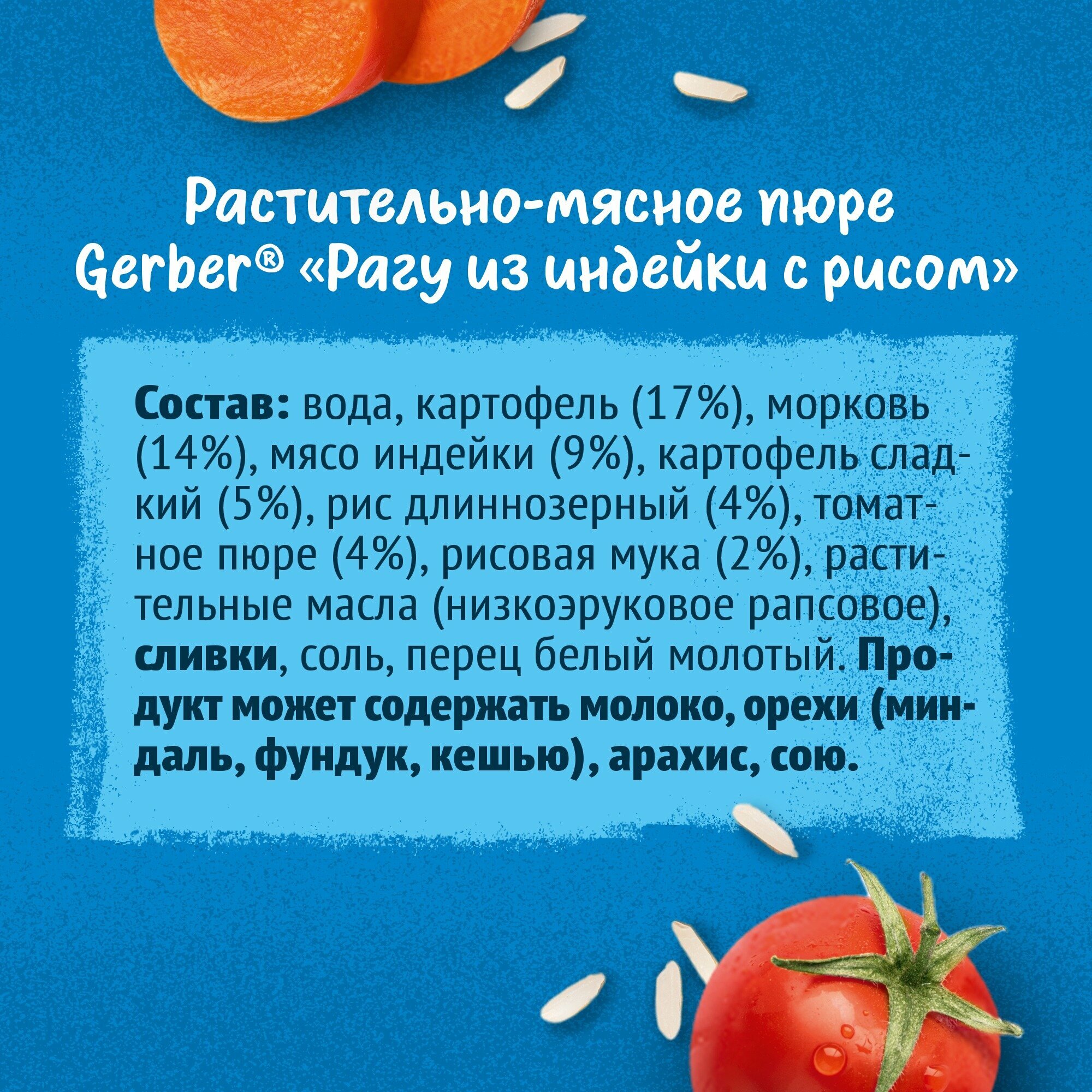 Ниже Вы можете прочитать отзывы на Пюре мясное Gerber с 1 года, рагу из индейки с рисом, 190 г, ознакомится с подробными характеристиками, посмотреть интересные обзоры и фотографии на Пюре мясное Gerber с 1 года, рагу из индейки с рисом, 190 г.