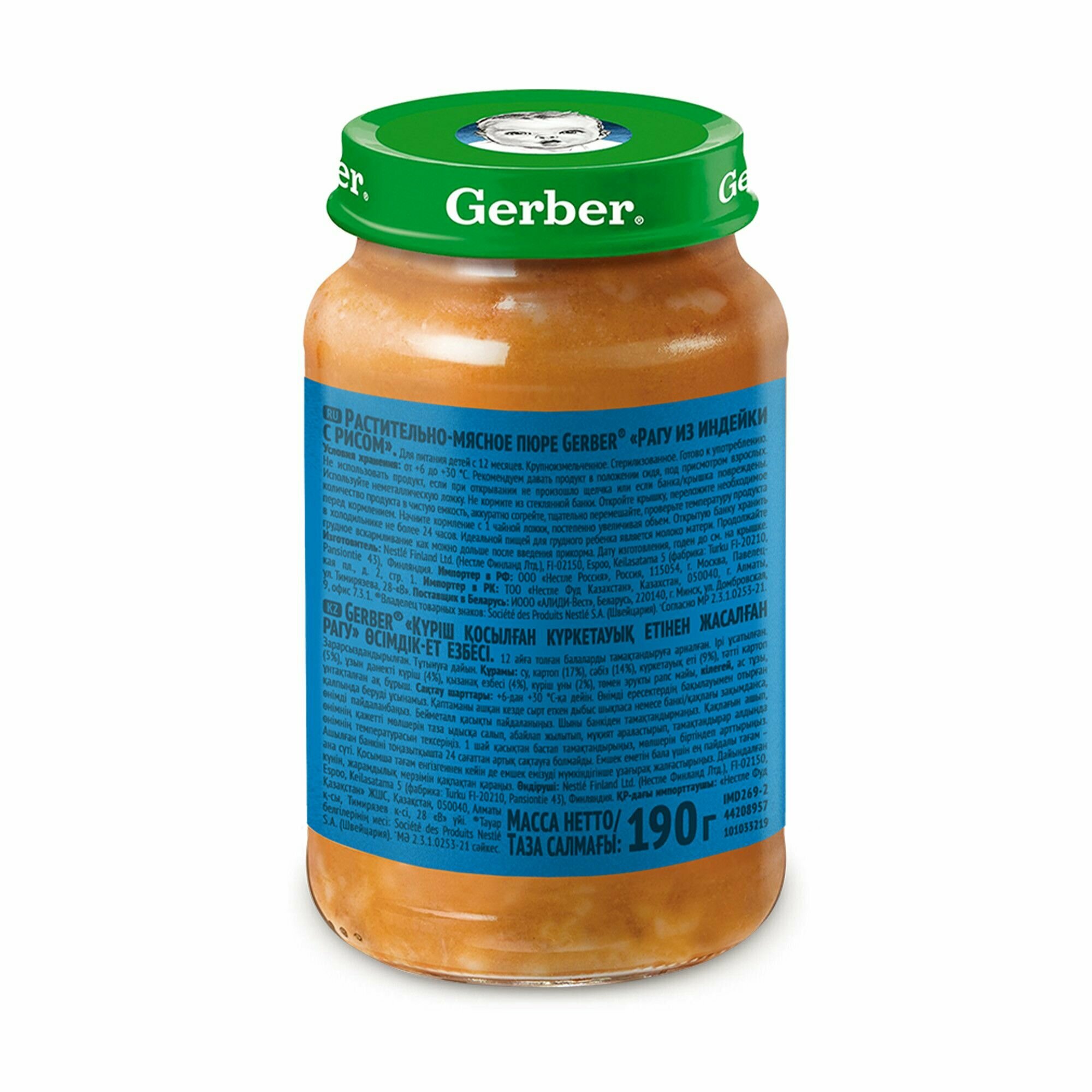 Пюре GERBER ( гербер) Рагу из индейки с рисом с 12 мес 190 г (12 штук в упаковке)