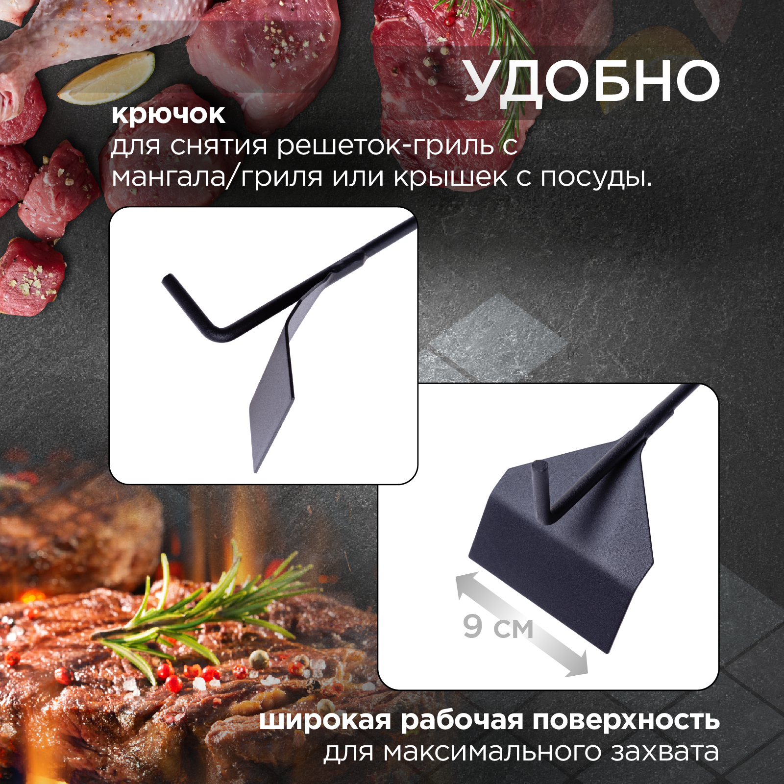 | Плюсы: | Два в одном: удобно перемещать уголь в мангале |