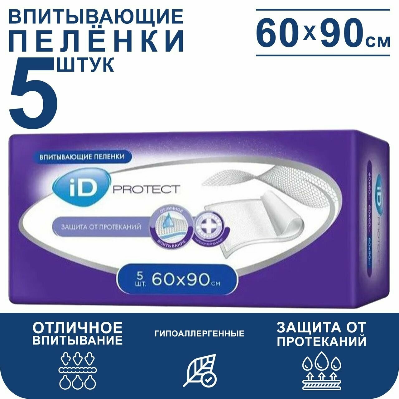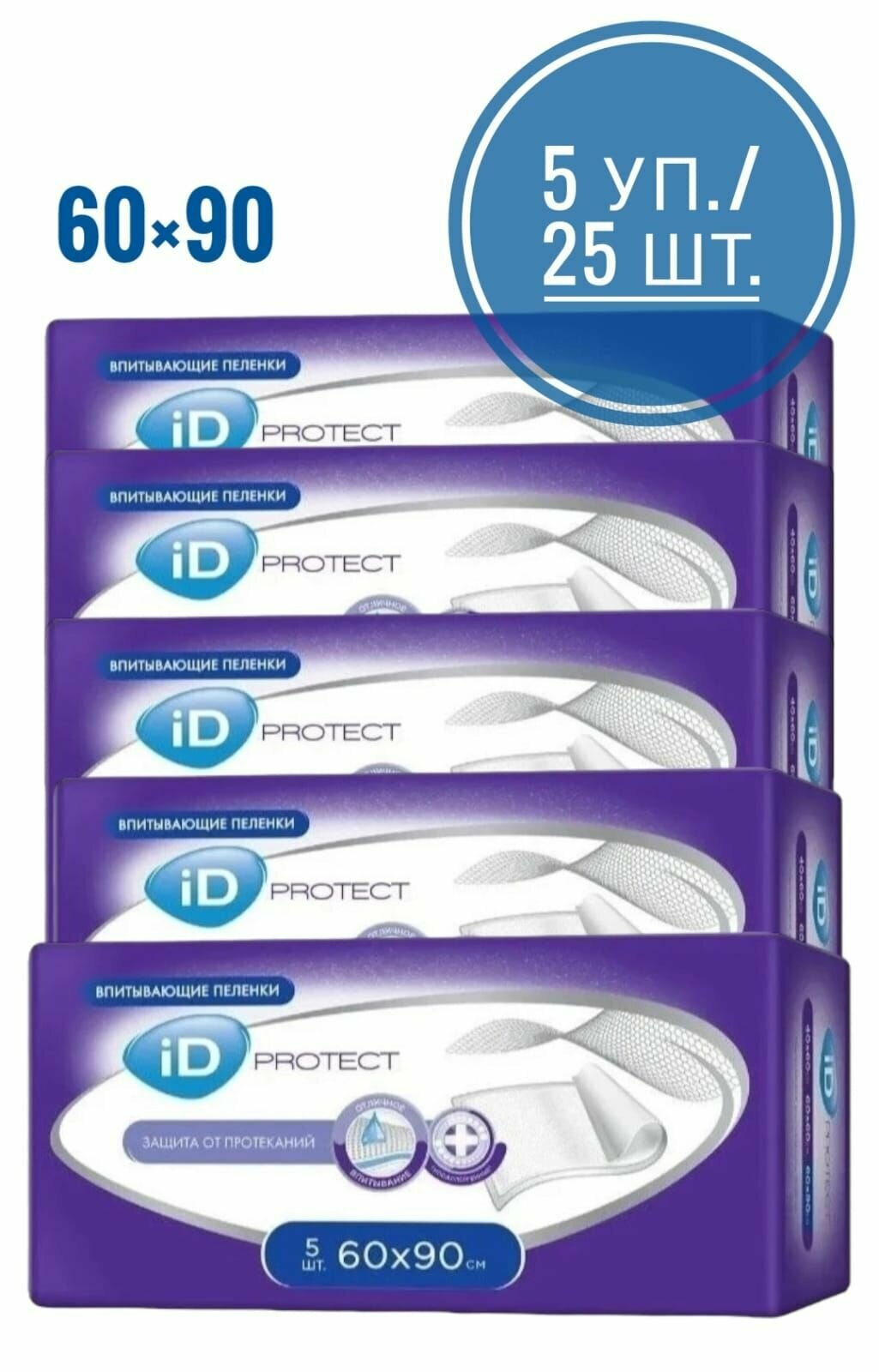 Пеленки iD Protect, 60 х 90 см, 5 шт.