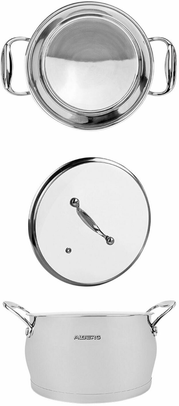 Набор кастрюль ALBERG AL-2005 6 предметов, 2.6л/3.7л/6.2л, нержавеющая сталь, индукция, стеклянные крышки интересное: