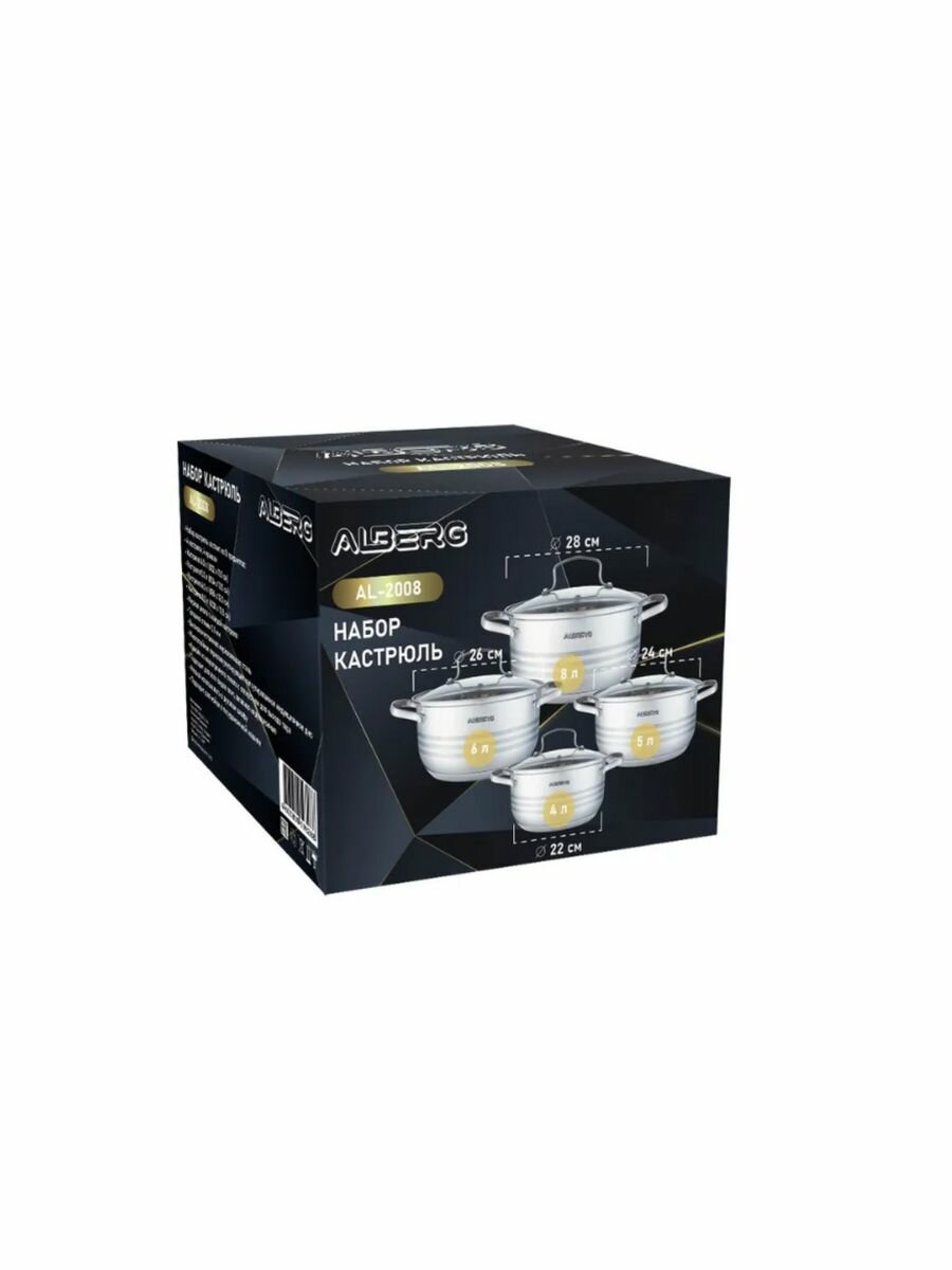 Набор кастрюль ALBERG AL-2008, посуда для приготовления из нержавеющей стали, 8 предметов интересное: