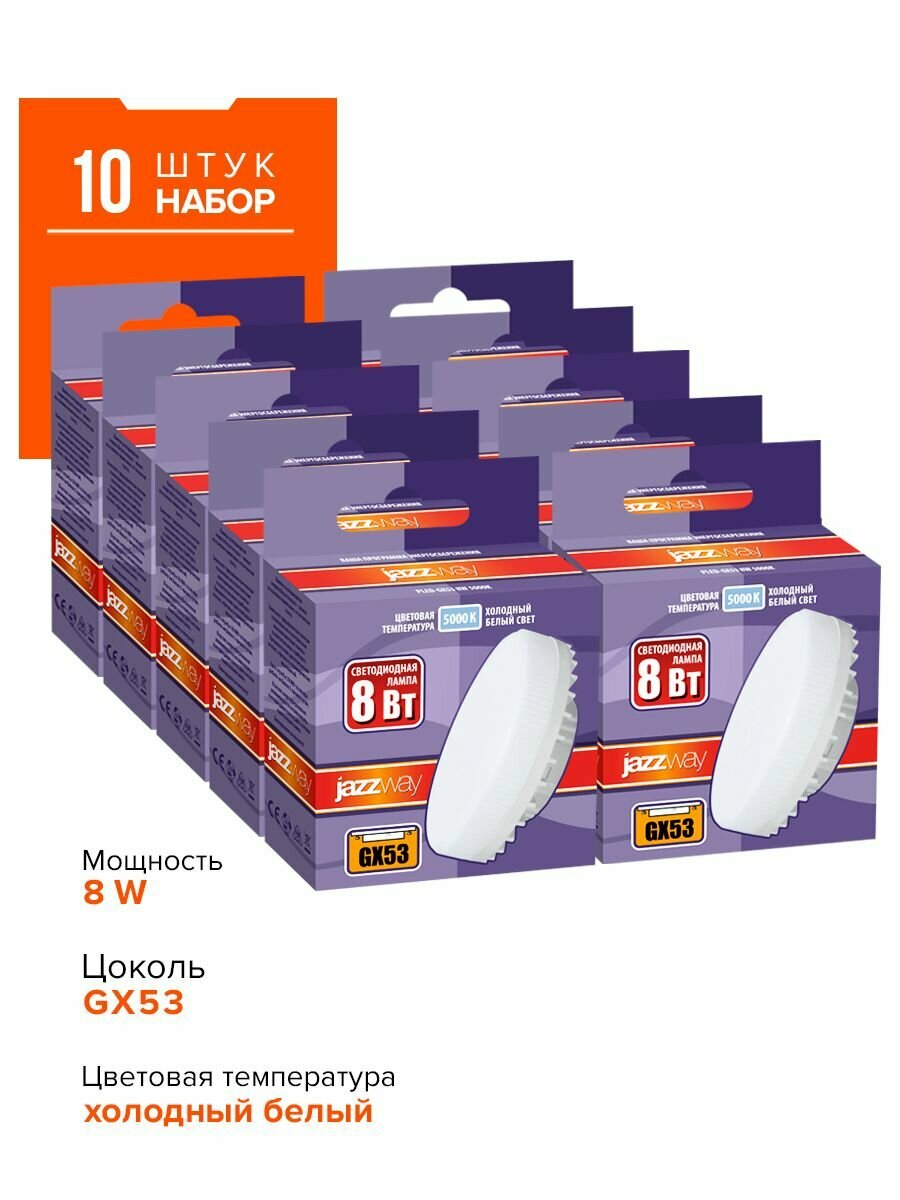 Набор из 10 светодиодных ламп Jazzway PLED-GX53 8W 5000K