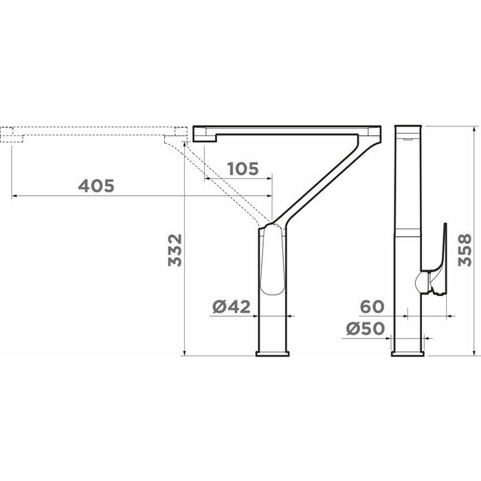 | Длина излива | 405 мм |