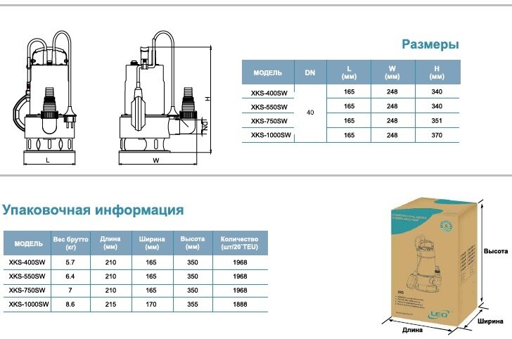 Дренажный насос для чистой воды LEO XKS-750SW (750 Вт) интересное: