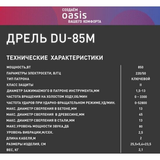 Дрель ударная электрическая электродрель от сети Oasis DU-85M интересное: