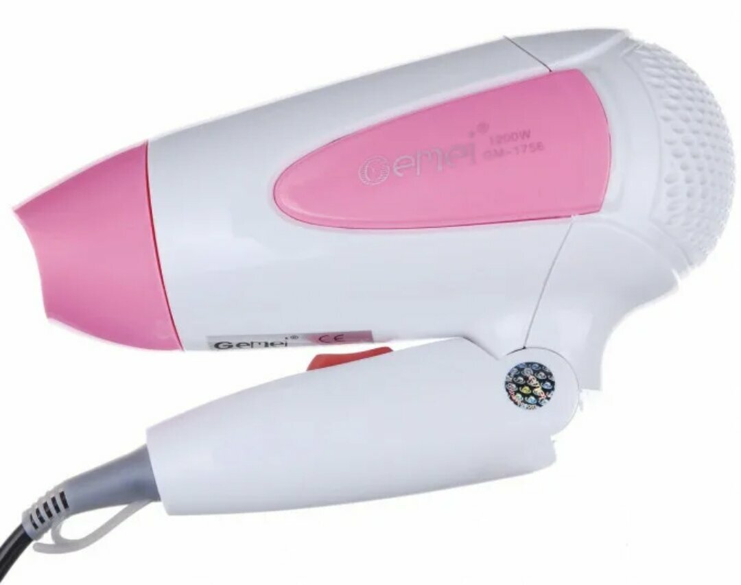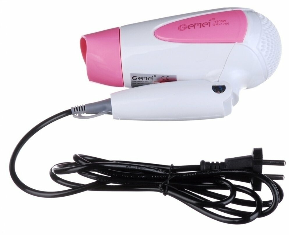 Фен Дорожный Gemei Gm-1756 1200 Вт Складываемая Ручка, бело-розовый интересное: