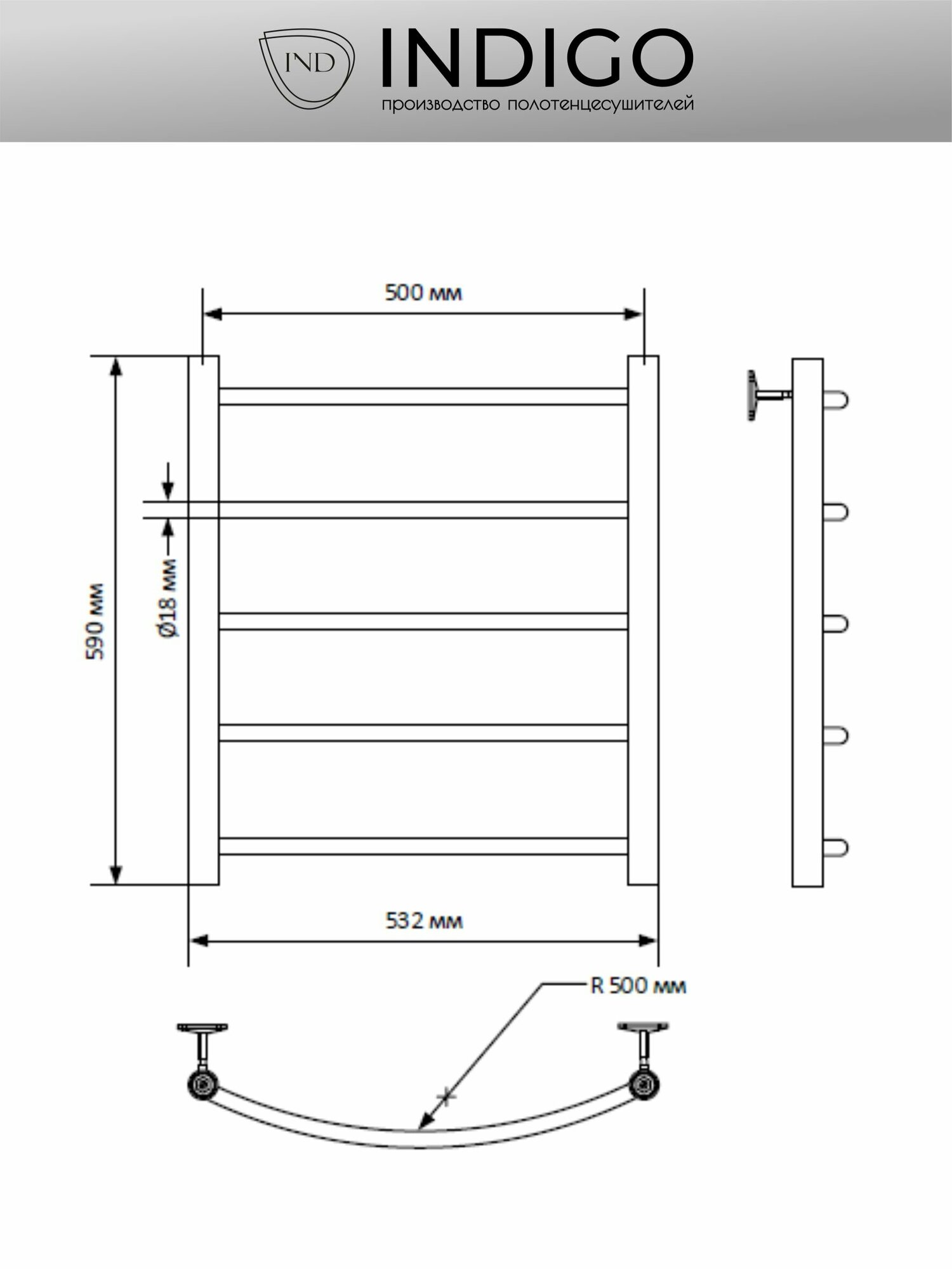 Полотенцесушитель водяной INDIGO Arc 60/50