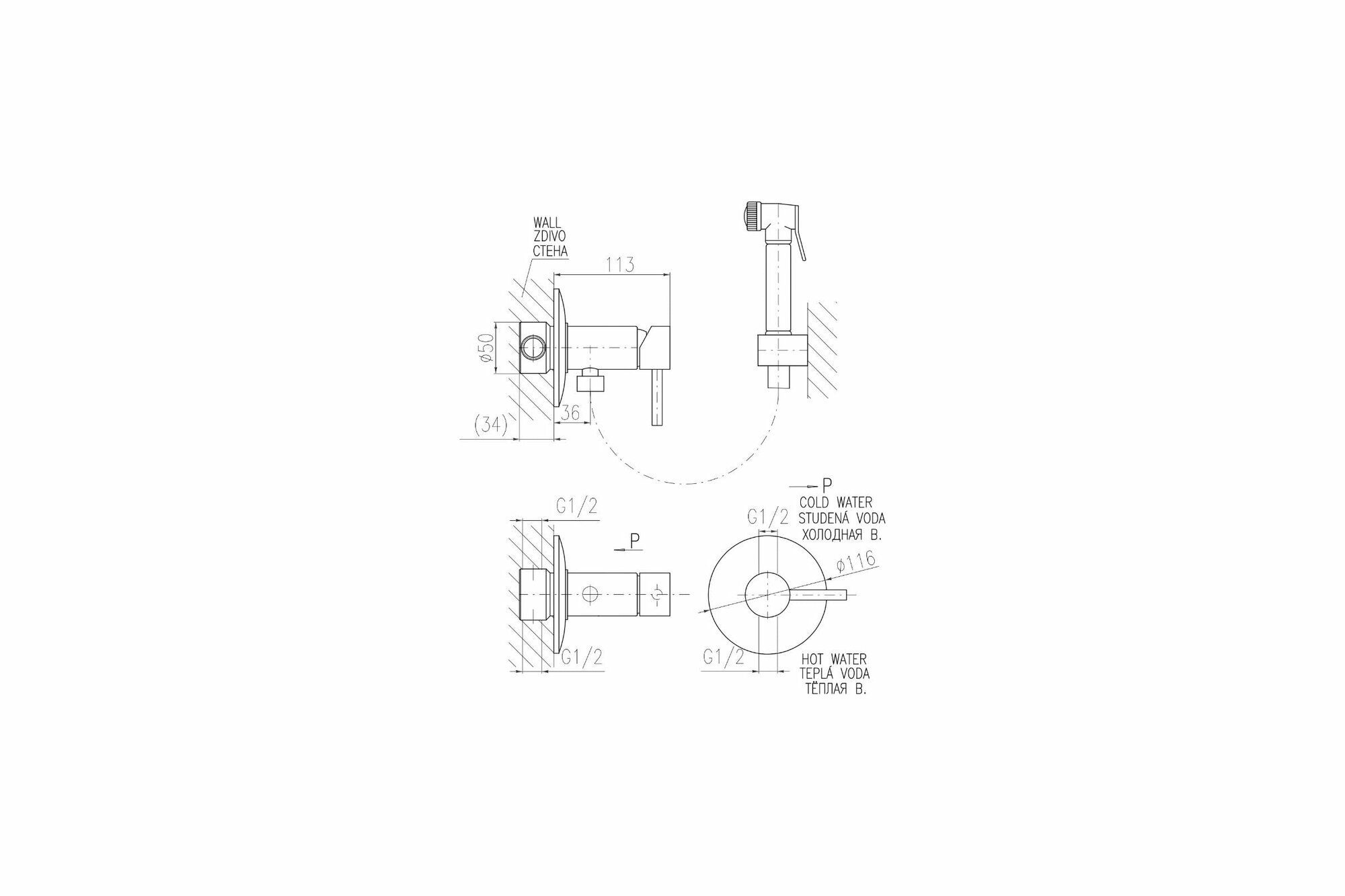 Rav Slezak Seina Смеситель для биде монтирующий в стену с душем цвет хром (SE947/1)