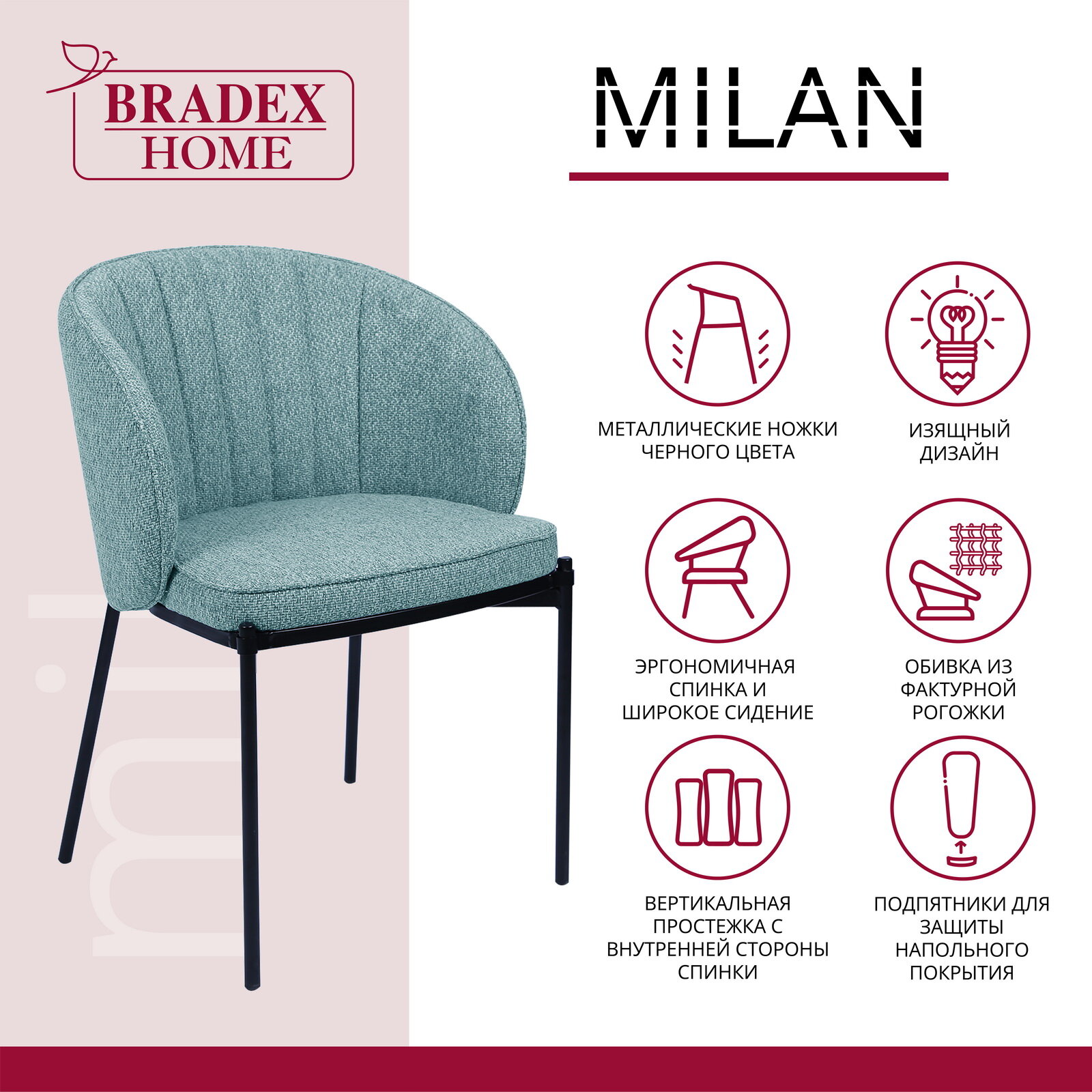 Стул Bradex Milan бирюзовый (FR 0514) интересное: