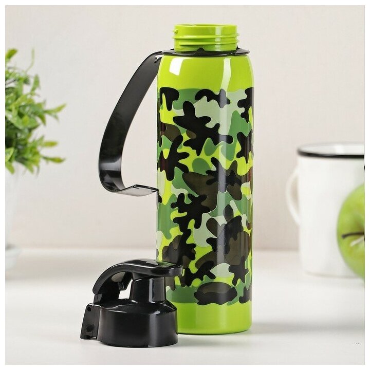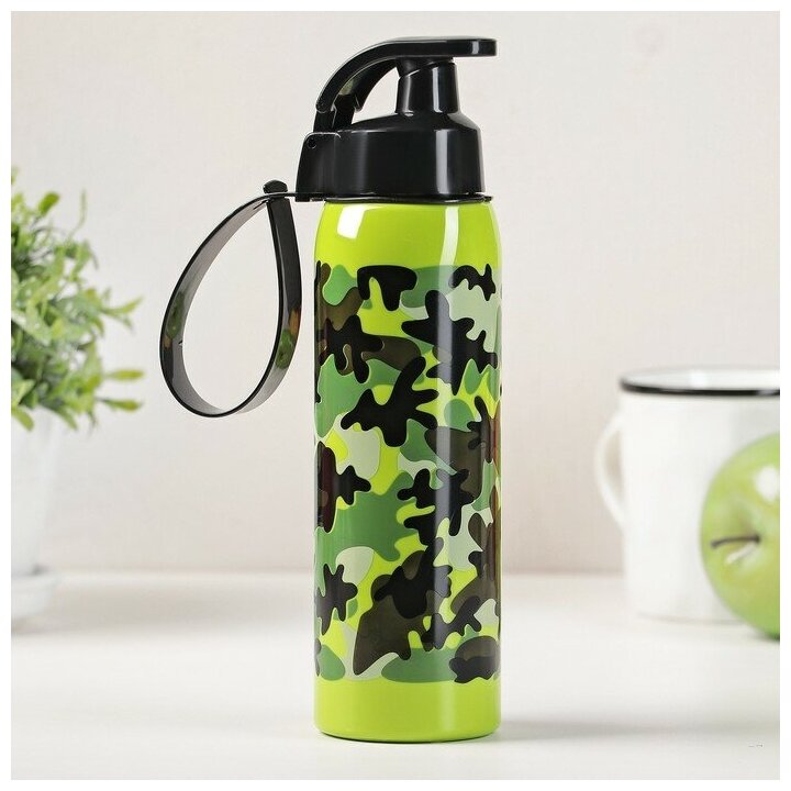 Бутылка для воды пластиковая «Милитари», 500 мл, 6×6×23 см, цвет зелёный