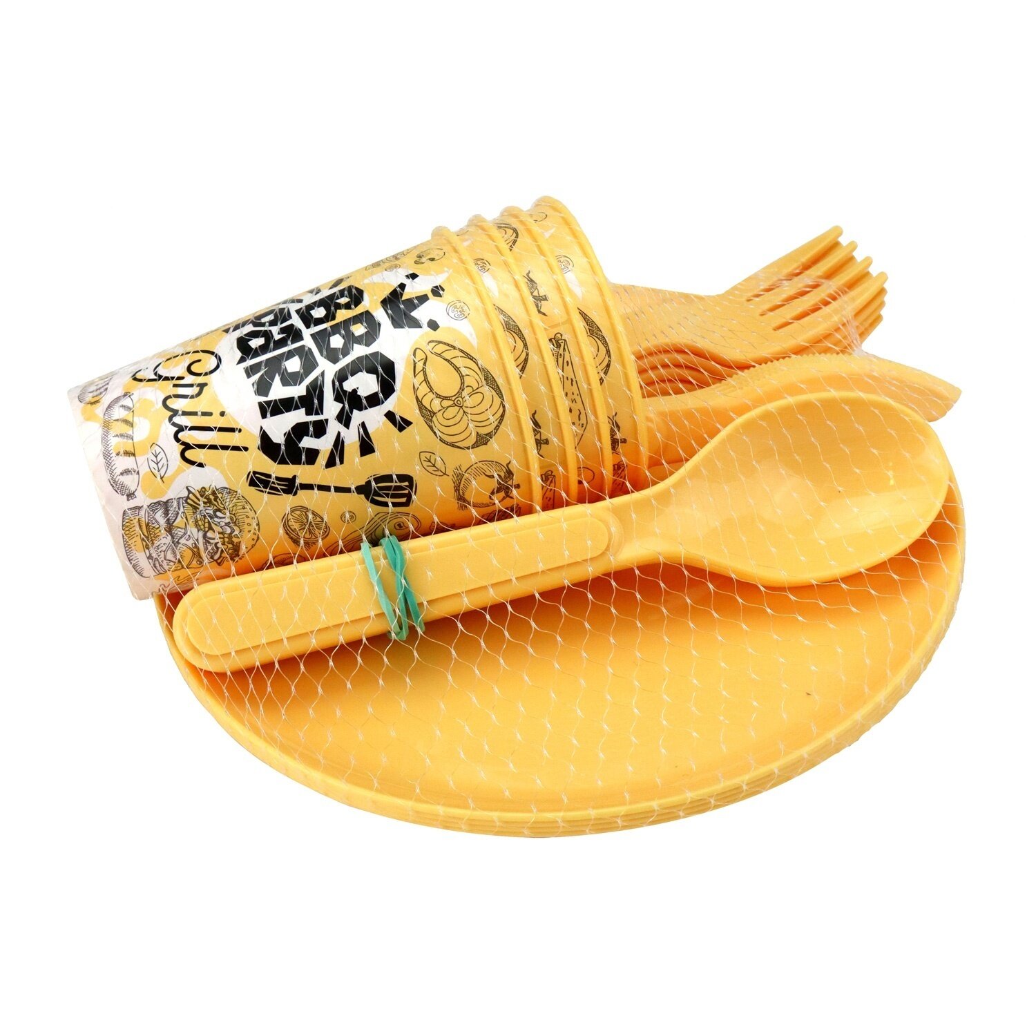 Комплект для пикника, 19 предметов на 4 персоны (Желтый)