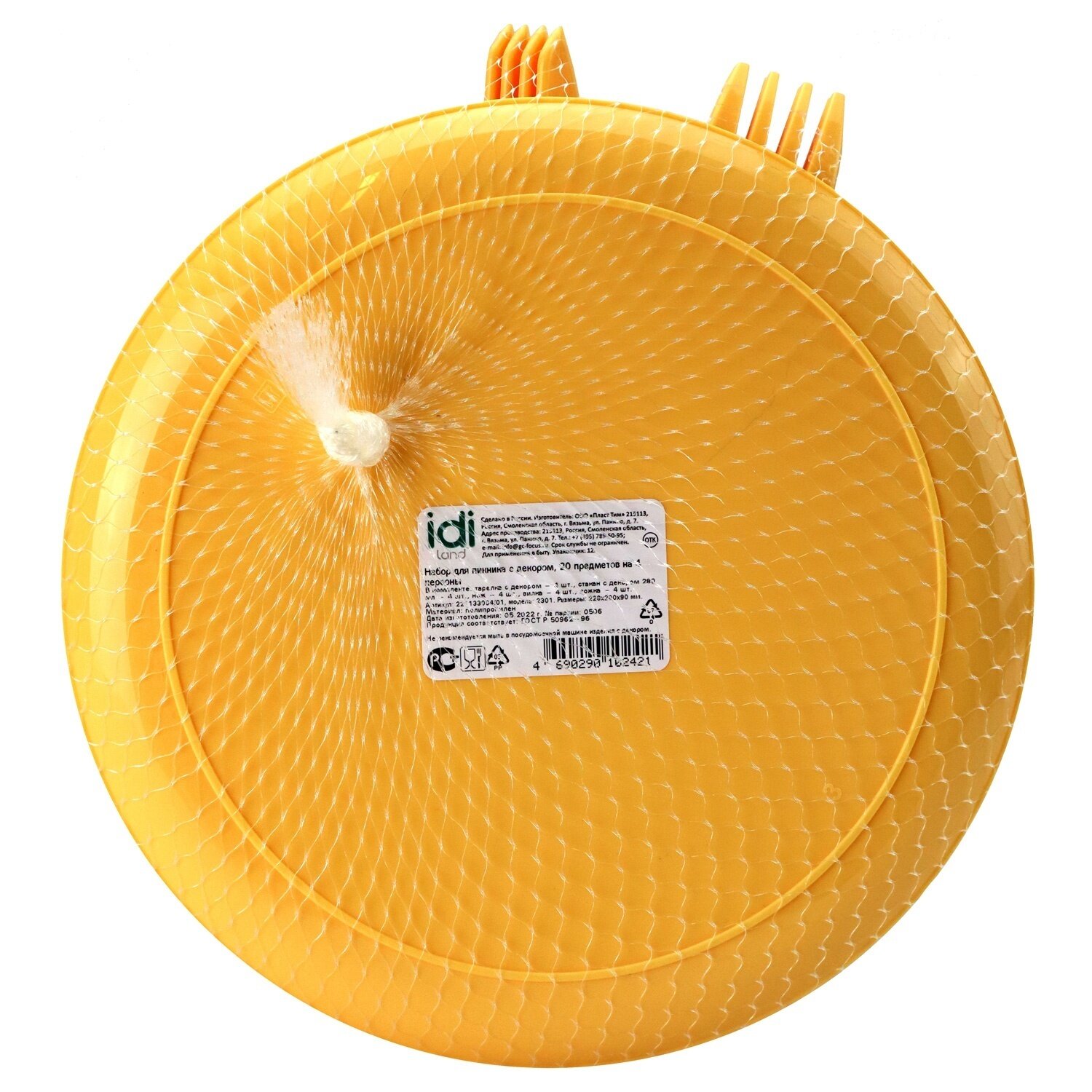 Набор для пикника с декором, 20 предметов на 4 персоны, (бледно-желтый)