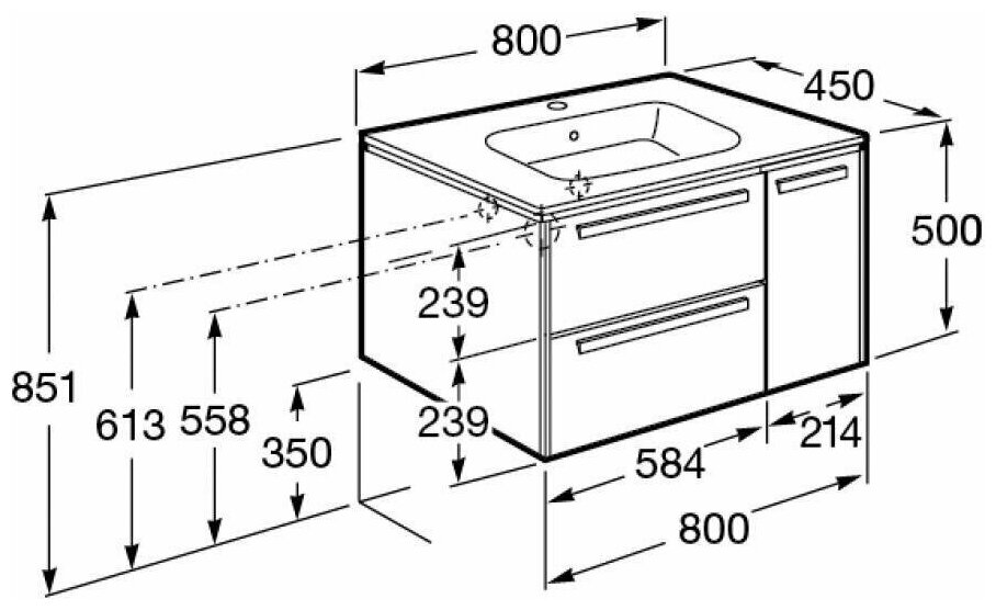Тумба без раковины (комод) ROCA Lago 80, подвесной, 800х490х450 мм, белый глянец [857296806]