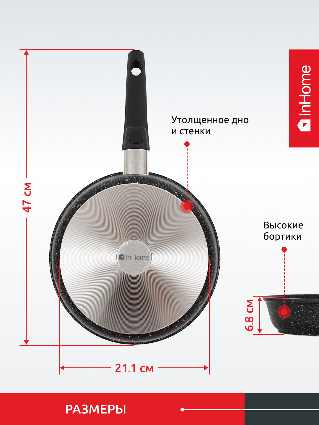 Литая сковорода с антипригарным покрытием, съемная ручка, InHome IN0328/МR0