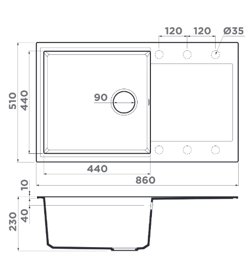 Накладная кухонная мойка 51 см, OMOIKIRI Daisen 86, черный