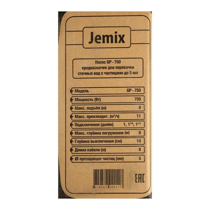 JEMIX Насос дренажный JEMIX GP-750, 750 Вт, напор 9 м, 183 л/мин, диаметр всасываемых частиц 5 мм интересное: