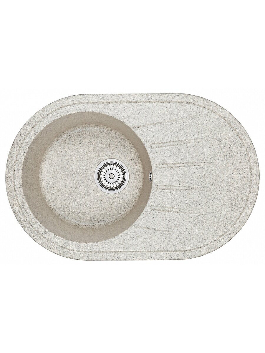 Кухонная мойка кварцевая Granula ST-7601 овальная с крылом, стандарт, чаша D 390, цвет бежевый (7601be)